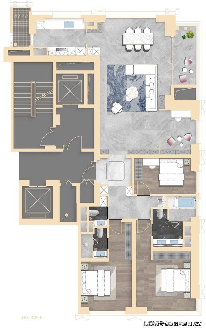 建面约193、237㎡为类一梯一户设计,拥独立门厅;建面约303㎡ 标配2梯1户、私享梯厅,纯粹的大平层圈层!