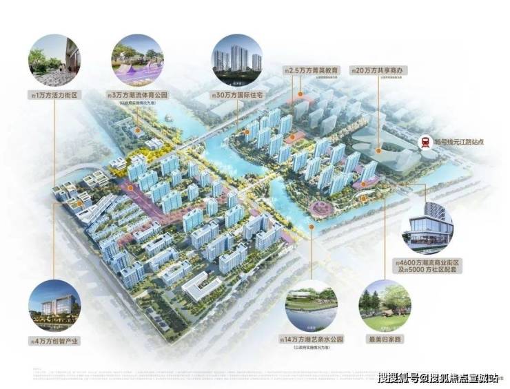 藉由上海南部科创中心与15号线智创聚集建设,依托“3+6+9”闵行TOD示范区和“十四五”双战略及品牌开发商高起点的人居营造,元江片区成为主城科创重策地,汇聚3大国家级产业区、5大科创中心、12大科创园、3000+企业,未来将以科创产业为引擎,形成“南紫竹北莲花”双核发展,入驻100+五百强企业,引进80万全球高智人才,筑就创新、人文、生态高度融合的中央服务区。