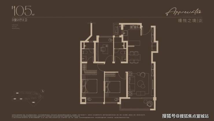 建面约105㎡3房户型,总价400万级即可上车!堪称同等总价段的改善天花板!三开间朝南,约9.6米大尺度南向面宽,最大程度揽光入室;客餐厅一体化 ,连接厨房和南向阳台,动线流畅,也是更大的欢乐聚场;创新研发S墙设计,预留冰箱专属位置,释放厨房使用空间 ;主卧套房设计,奢享独立卫浴和衣帽间,尽享尊崇。
