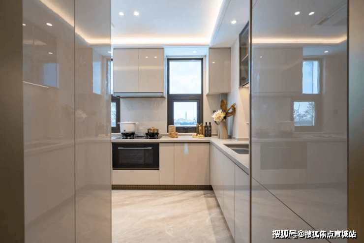项目厨房使用方太的灶蒸烤一体机、吸油烟机三件套交付,更有弗兰卡的水槽、龙头,定制橱柜,诺贝尔的地面、墙面,石英石台面等。